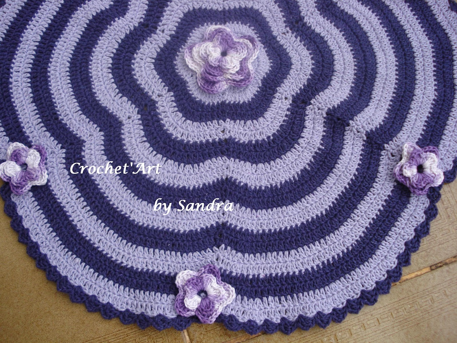 Encomenda prontinha de um tapete em formato de flor nas cores roxo e lilás.